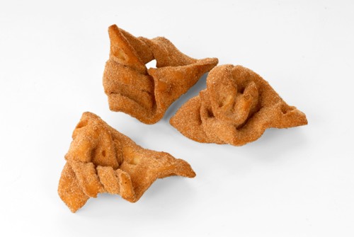 Die fränkische Spezialität die bis vor ein paar Jahren nur zu Hochzeiten oder runden Geburtstagen gebacken wurde, gibt es bei uns das ganze Jahr. Der Mürbteig wird mit einer speziellen Schneid- und Falttechnik in Form gebracht. Nach dem Ausbacken in Butterfett wird der Flecken mit Zimt und Zucker verfeinert. Dieses Gebäck schmeckt zu jeder Tages- und Jahreszeit.